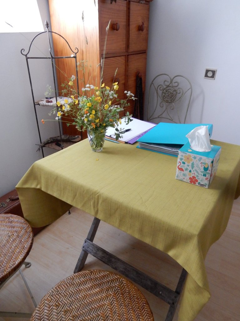 J’ai installé mon cabinet en Morbihan sur la commune de Saint-Laurent-sur Oust, au 16 Bis Beaumont, dans une maison construite par mon compagnon, au milieu d’un environnement naturel riche : les pierres levées, les arbres, la lande, … et le jardin.